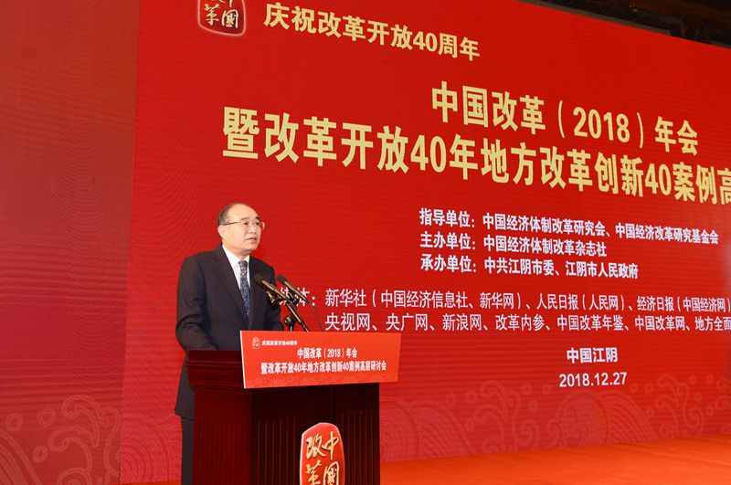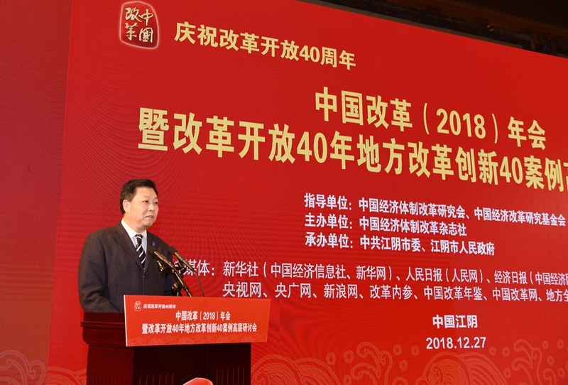 2018年12月27日,由中国经济体制改革研究会、中国经济改革研究基金会指导,中国经济体制改革杂志社主办,中共江阴市委、江阴市人民政府承办的“庆祝改革开放40周年——中国改革(2018)年会暨改革开放40年地方改革创新40案例高层研讨会”在江苏省江阴市召开。