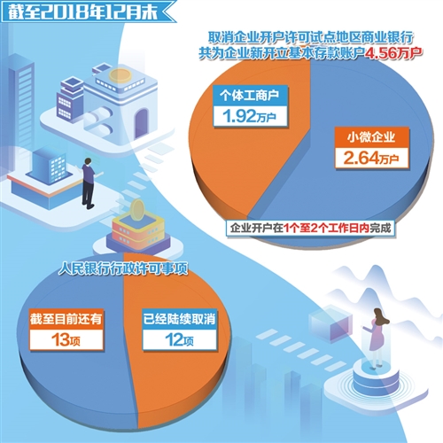 在“放管服”方面,中国人民银行办公厅主任、新闻发言人周学东介绍,这几年人民银行已经陆续取消了12项行政许可事项,到目前为止还有13项,其中就包括企业开户许可。下一步,如果有条件,可以放开或者取消的也会逐步取消。