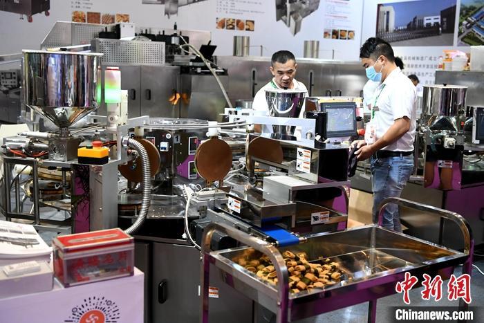 资料图:7月20日,客商在福建泉州一展览会上了解机械设备。 中新社记者 王东明 摄